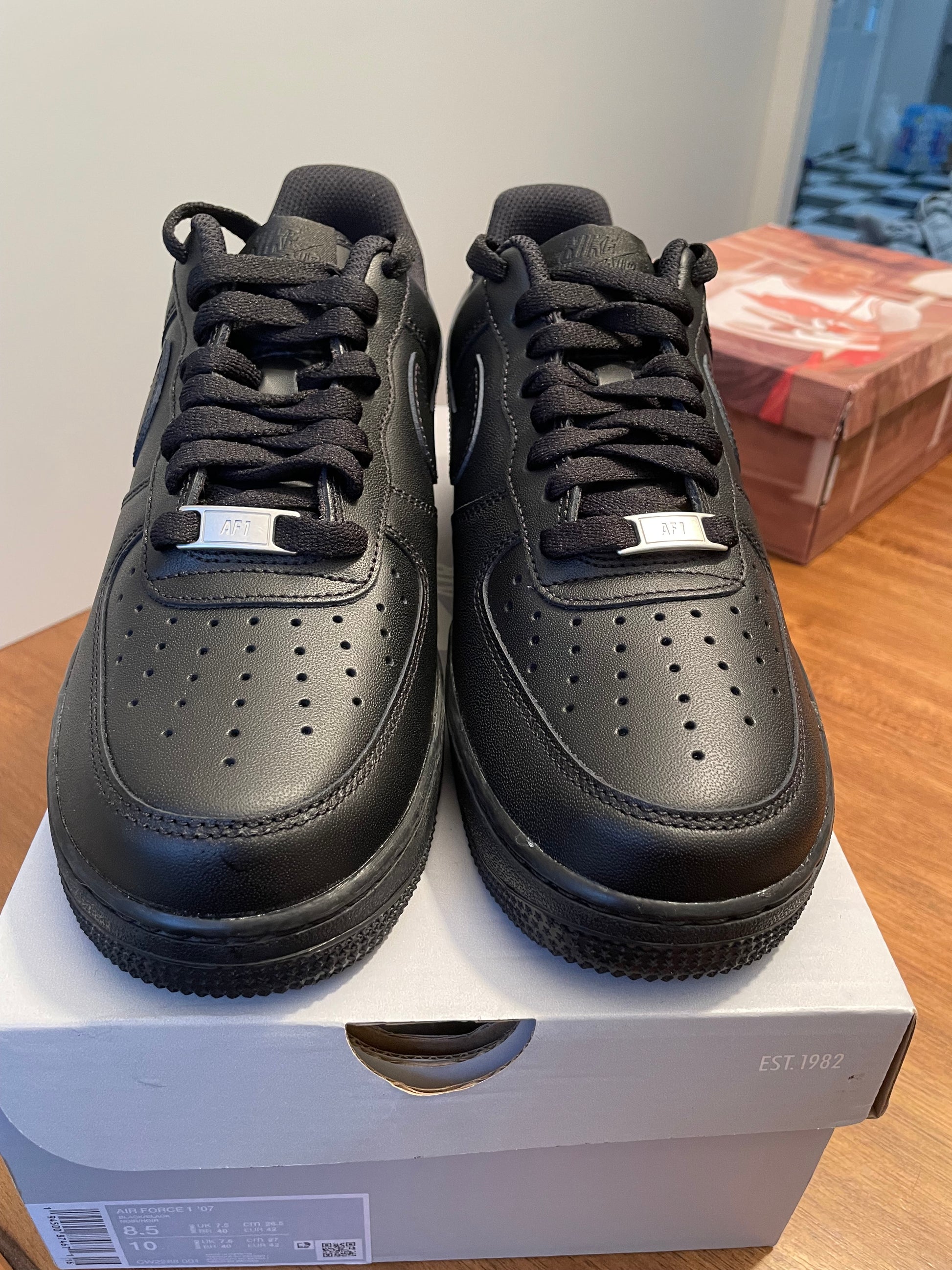 The Nike Air Force 1 Low 07' is a classic and timeless shoe that is both clean and affordable. With its iconic black design, this shoe is perfect for any occasion. As an expert in the industry, we proudly present these shoes to you.The Nike Air Force 1 '07 Low in black is a modern update to the classic 1982 basketball shoe, renowned for its clean lines and versatile design.