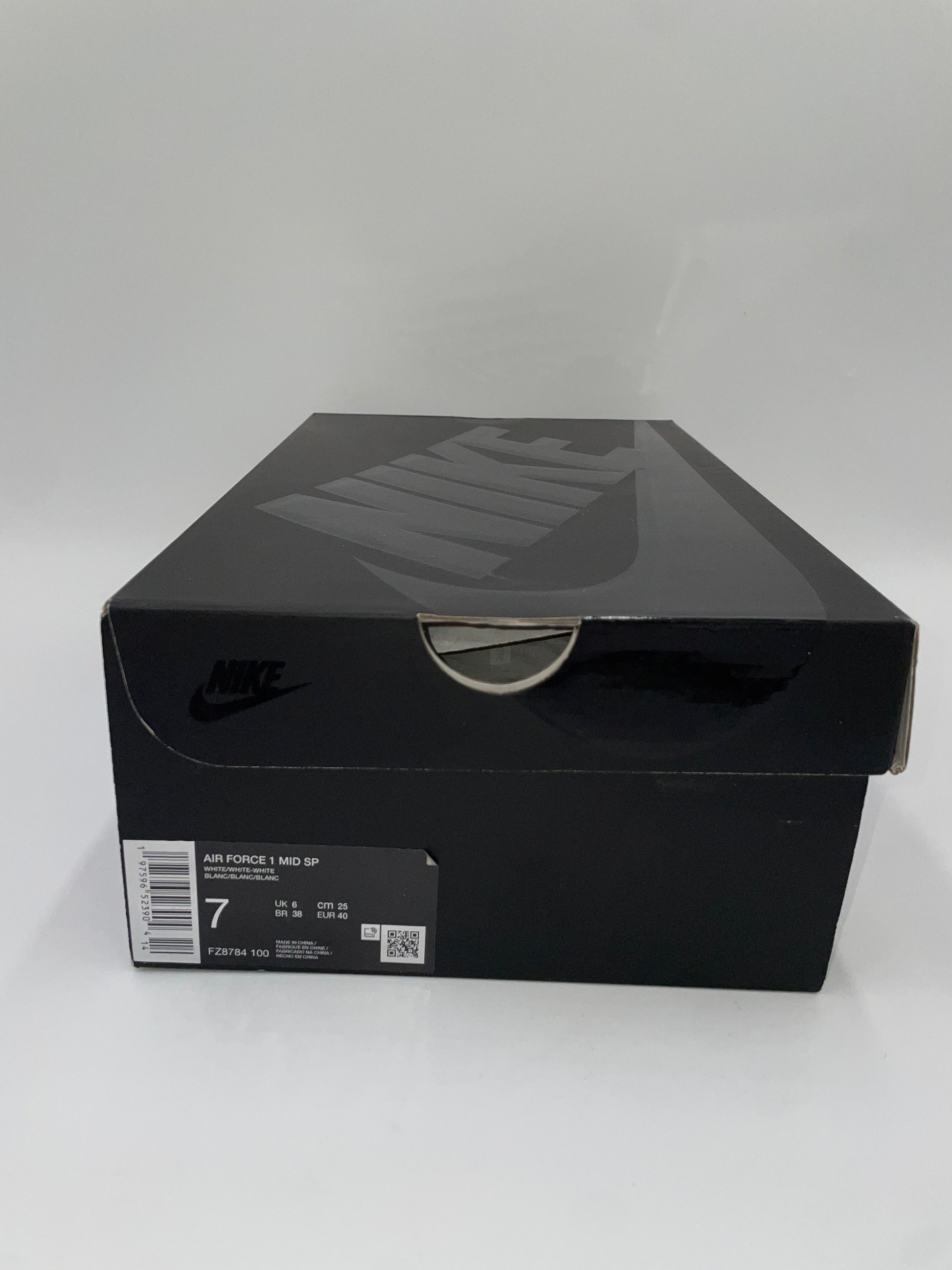 Elevate your style with the iconic Nike Air Force 1 Mid "SUPREME" in white. Experience the ultimate comfort and support with the classic design of the Nike Air Force 1 Mid, while adding a touch of elegance with the Supreme white colorway. Give your outfit a boost with this must-have sneaker.